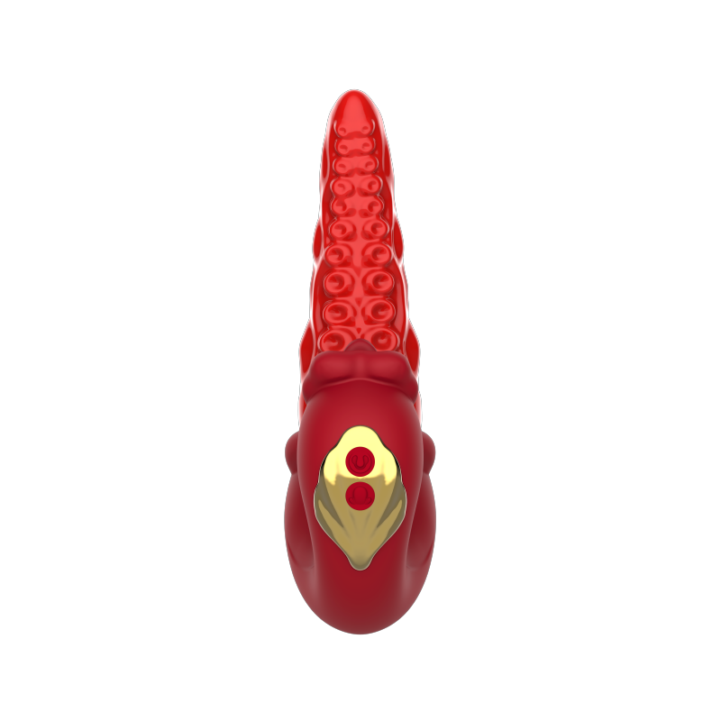 Découvrez le plaisir comme jamais auparavant avec ce vibrateur de langue de poulpe enchanté! Le corps rouge vibrant se courbe pour qu'une bouche puisse stimuler votre clitoris tandis que l'autre étend une langue rouge vif et texturée pour la pénétration! Offrez 10 tremblements de langue et les modes de balancement de la pénétration! Vous frissonnez et tremblez dans l'extase et l'excitation à mesure que vos fantasmes sombres se réalisent!